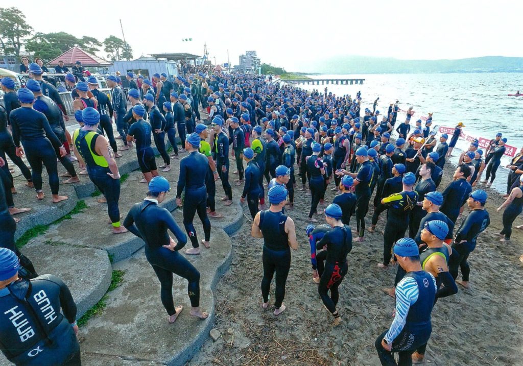 スイム距離の短縮アナウンスが場内に響き渡った瞬間、選手たちの「やったぁ!」というような歓声が沸き起こり、高波で不安を感じていたのは私だけでない、みんな一緒と思った瞬間、覚悟が決まりました。
