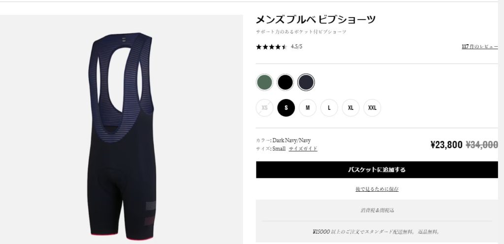 次にビブショーツも同様、価格調査をしたのですが、アマゾンやメルカリには同じ製品がなかったため、メーカーからセール品をそのまま購入しました。