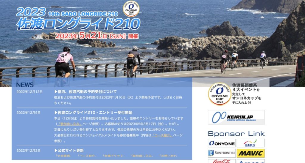 そして今年初イベントの申込が佐渡一周210kmロングライド。