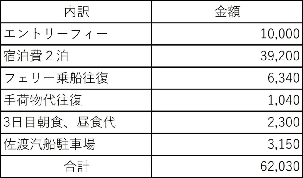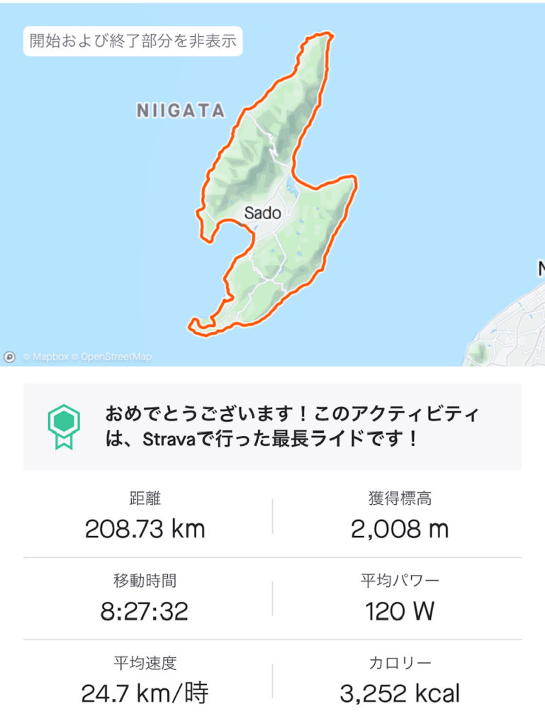 次回、参加するときは宿から両津フェリー乗り場まで10km圏内の宿を予約したいと思います。